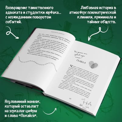 Что общего у известного адвоката, психопатки, следователя-шизофреника и студентки юрфака? Они вступили в игру маньяка, из которой нет выхода... Любовная история в атмосфере психиатрической клиники, криминала и тайных обществ. Возвращение таинственного адвоката и студентки юрфака... с неожиданным поворотом событий. Неуловимый маньяк, который оставляет на зеркалах цифры и слово «Покайся»...