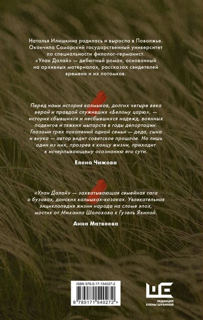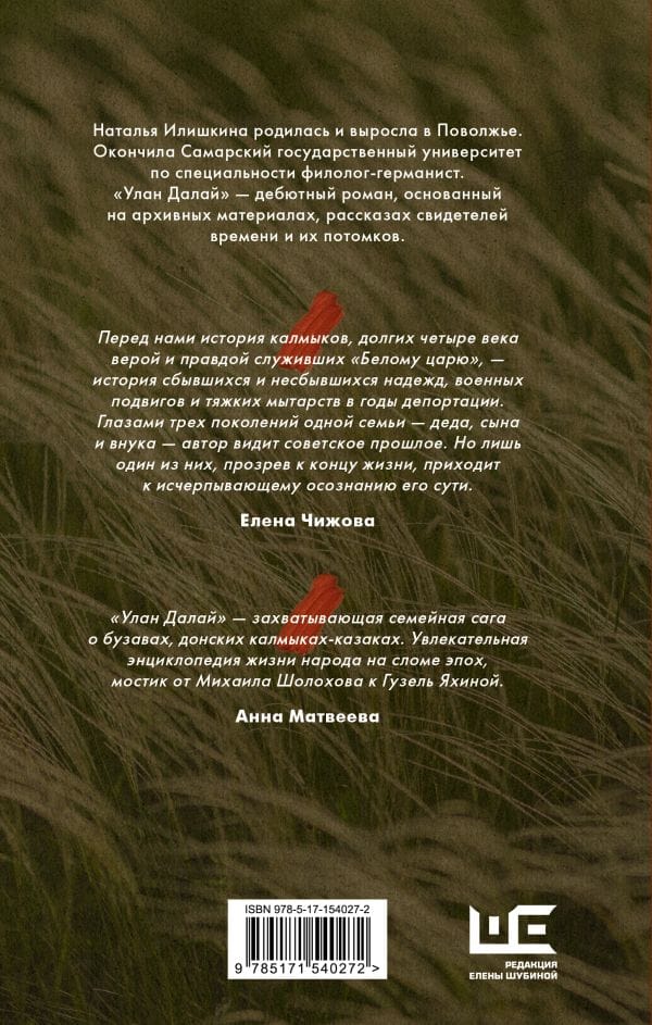 «“Улан-далай” — захватывающая семейная сага о бузавах, донских калмыках-казаках. Увлекательная энциклопедия жизни народа на сломе эпох, мостик от Михаила Шолохова к Гузель Яхиной». Анна Матвеева