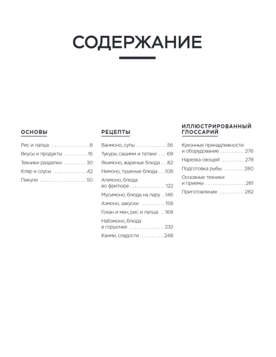 Японская кухня вошла в нашу жизнь гораздо быстрее, чем китайская и корейская, потому что ее основные блюда — суши и роллы — пришлись по вкусу гораздо большему числу людей из-за красивой подачи, легкости порций, приемлемости специй. Приготовить их дома всегда казалось сложной задачей для любителей готовить. Но любая задача становится решаемой, если есть хороший помощник. Таким помощником несомненно является это прекрасное издание с детально разработанной структурой теории и практики, с четкими схемами и пошаговыми фотографиями процессов приготовления. Книга начинается с основ японской кулинарии — продуктов: риса и лапши, соевого соуса и тофу, шиитаке и мисо; техники разделки; кляра и соусов. На этой основе приготовление основных блюд японской кулинарии — супов, жареных и тушеных блюд и блюд во фритюре, а также сладостей — принесет скорее удовольствие и удовлетворение, чем озабоченность и сомнение. Следуйте шаг за шагом по страницам книги, и будете вознаграждены за свою смелость!