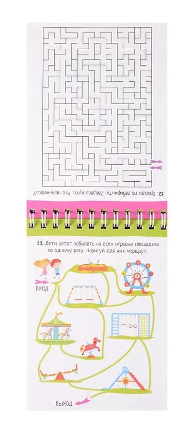 Открыв блокнот, ребёнок попадёт в захватывающий мир лабиринтов. Лабиринты придумали уже давно, но до сих пор эта разновидность головоломок не теряет своей популярности. При этом игры с лабиринтами очень полезны. Проходя лабиринты, ребёнок тренирует мелкую моторику и контроль движений руки. Это способствует выработке ровного красивого почерка. Поиск верного пути развивает внимание, пространственное мышление, способность к анализу.