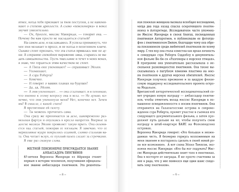 Как часто вы сталкивались с проблемами, которые невозможно решить? Веронике Маккриди исполнилось восемьдесят семь, когда она получила почетное звание первого в мире амбассадора пингвинов и узнала страшную новость: океанариум в Лохнаморги закрывают. И двадцать четыре пингвина, живущие там, будут подвергнуты эвтаназии.
