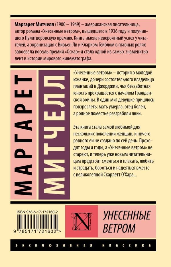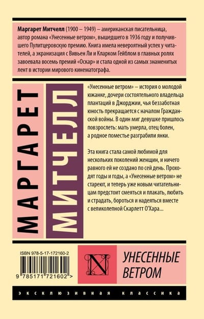 «Унесенные ветром» — история о молодой южанке, дочери состоятельного владельца плантаций в Джорджии, чья беззаботная юность прекращается с началом Гражданской войны. В один миг девушке пришлось повзрослеть: мать умерла, отец болен, а родное поместье разграбили янки. Эта книга стала самой любимой для нескольких поколений женщин, и ничего равного ей не создано по сей день. Проходят годы и годы, а «Унесенные ветром» не стареют, и теперь уже новым читательницам предстоит смеяться и плакать, любить и страдать, бороться и надеяться вместе с великолепной Скарлетт О’Хара...