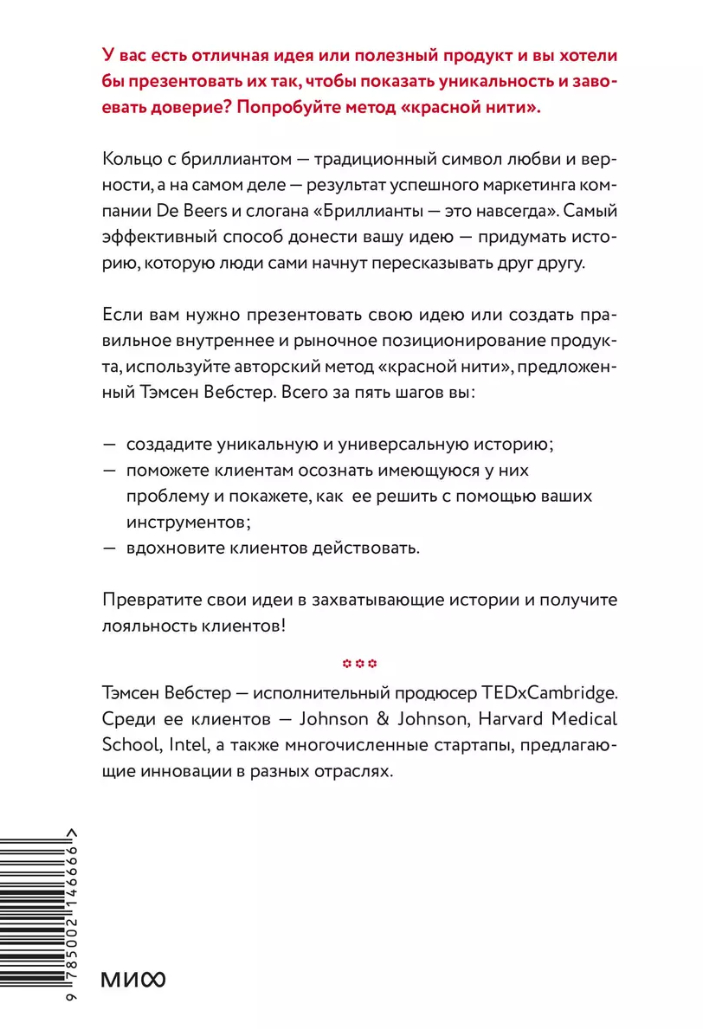 Если вам нужно презентовать свою идею или создать правильное внутреннее и рыночное позиционирование продукта, используйте авторский метод «красной нити», созданный Тэмсен Вебстер. Всего за пять шагов вы: