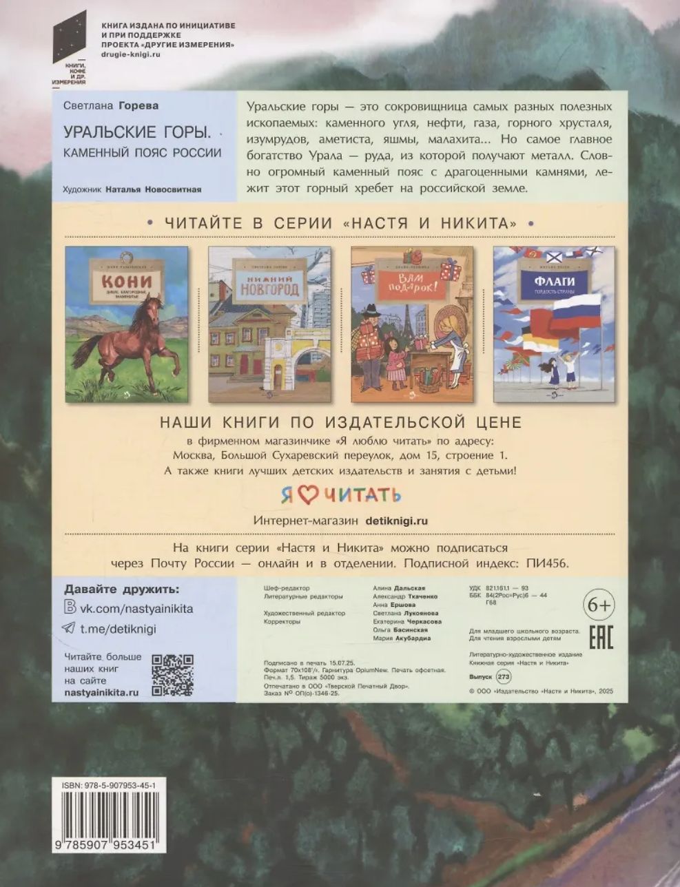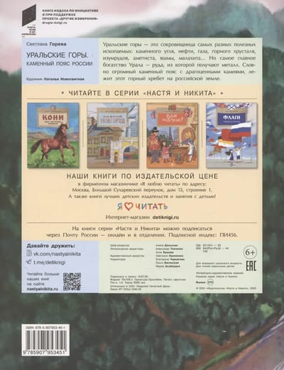 «Уральские горы. Каменный пояс России» - познавательная книга серии «Настя и Никита» для младшего школьного возраста. Книга упакована с прозрачный пластиковый пакет с клеевым краем.