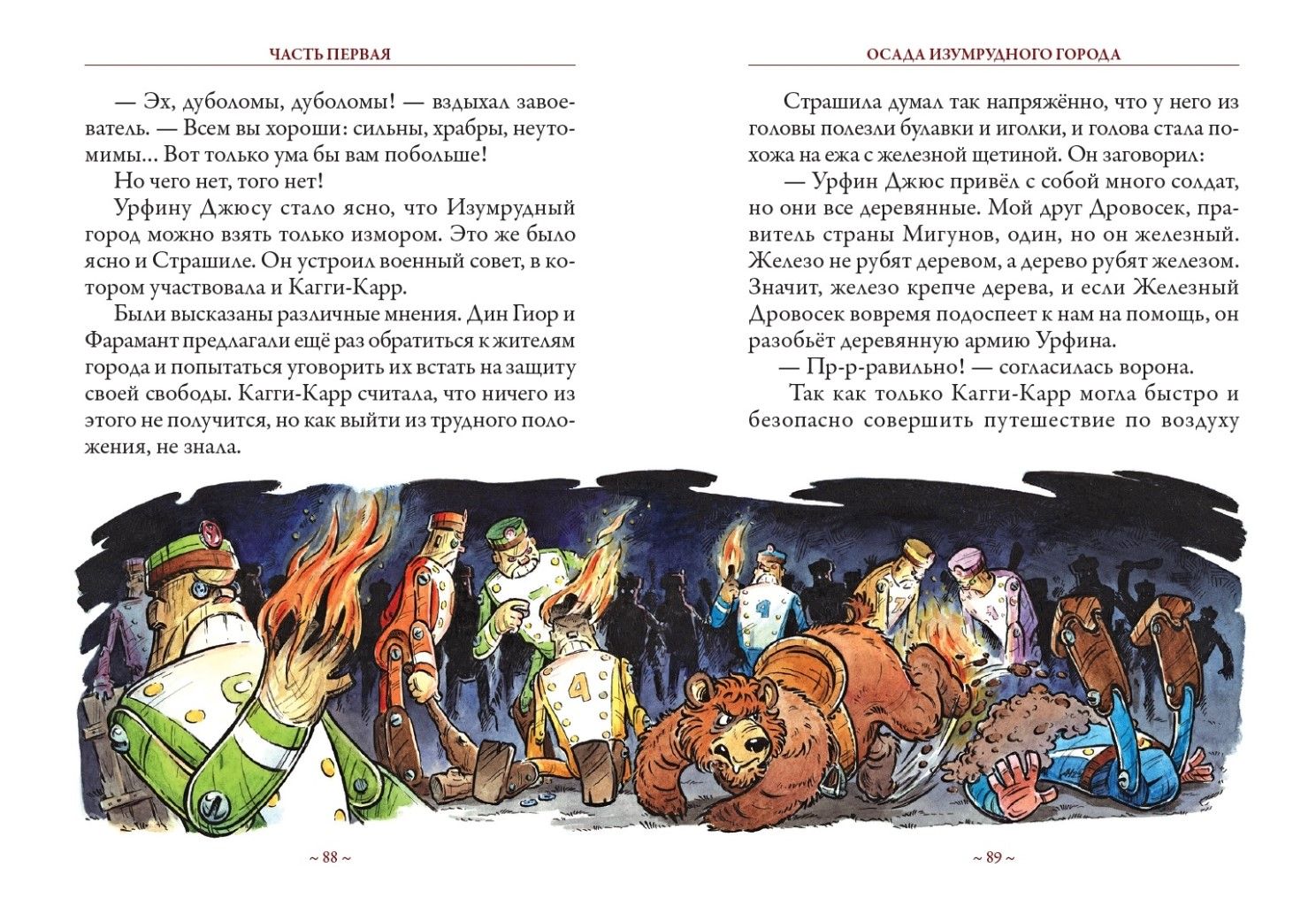 Сказочная повесть Александра Мелентьевича Волкова (1891–1977) «Урфин Джюс и его деревянные солдаты» является продолжением его знаменитой книги «Волшебник Изумрудного города». Обитателей волшебной страны постигает несчастье: коварный и жестокий Урфин Джюс захватывает власть с помощью целой армии деревянных солдат. Чтобы освободить жителей и свергнуть злодея, на помощь старым друзьям отправляется отважная девочка Элли. Текст украшают замечательные иллюстрации Дмитрия Николаевича Никулушкина (1966).
