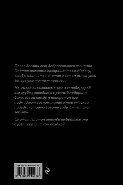 После десяти лет добровольного изгнания Платон внезапно возвращается в Москву, чтобы окончить начатое и затем исчезнуть. Теперь уже точно — навсегда.