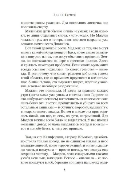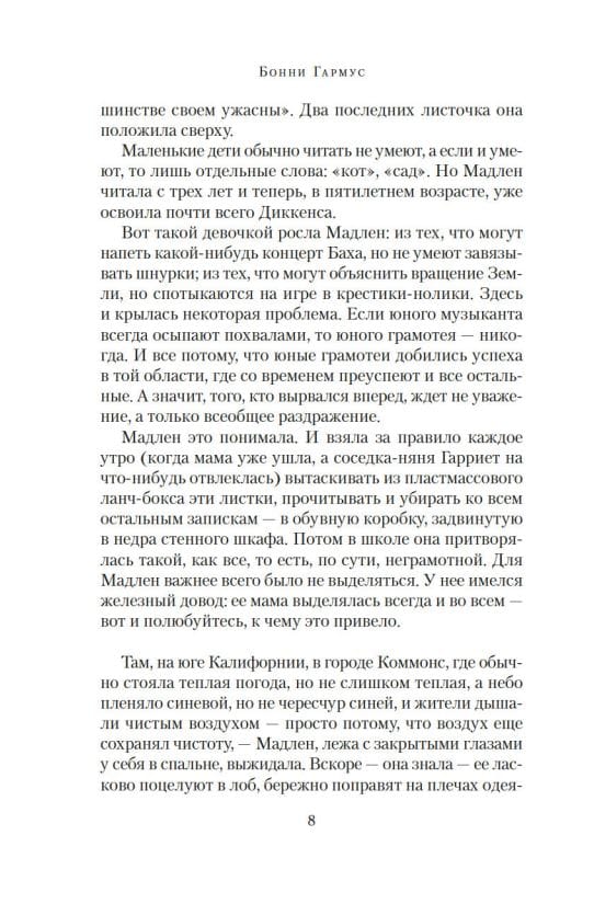 Тем временем ее пятилетняя дочь Мадлен, растущая под присмотром минно-разыскного пса по кличке Шесть-Тридцать, пытается найти в школьной библиотеке Набокова и Нормана Мейлера, а также выстроить родословное древо, на котором должно найтись место и без пяти минут нобелевскому лауреату по химии Кальвину Эвансу, и фее-крестной, и деду в полосатой тюремной робе, и бабке, укрывшейся от налоговой полиции в Бразилии...