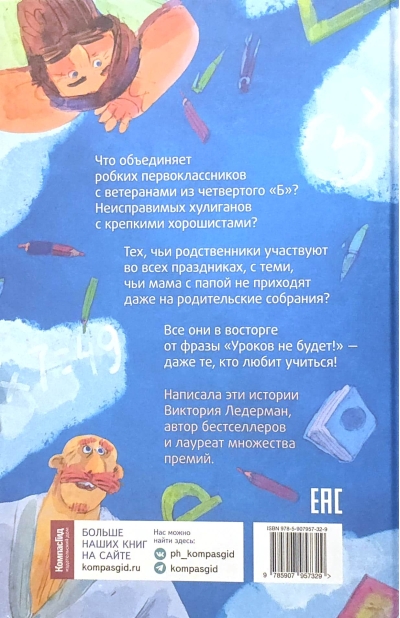 Виктория Ледерман — автор многочисленных бестселлеров для читателей самых разных возрастов и лауреат множества премий. Сборник «Уроков не будет!» отмечен Корнейчуковской премией. По подростковой повести «Календарь ма(й)я» снят фильм. Рассказы о ребятах 1–5 классов («К доске пойдёт... Василькин!», «Это наш 4 «Н», «Нарочно не придумаешь!») бесконечно переиздаются — потому что их читает каждое новое поколение школьников — и скоро станут настоящей классикой детской литературы.