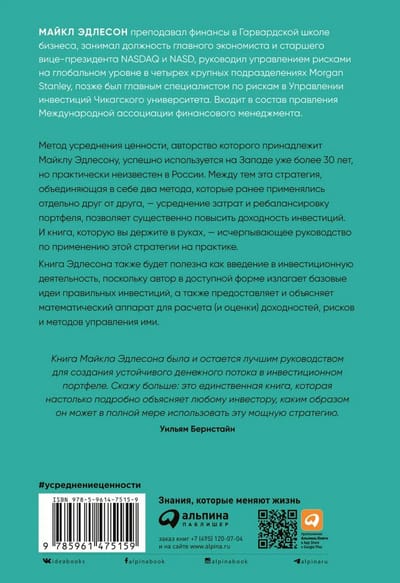 Книга Эдлесона также будет полезна как введение в инвестиционную деятельность, поскольку в доступной форме излагает базовые идеи правильных инвестиций, а также предоставляет и объясняет математический аппарат для расчета (и оценки) доходностей, рисков и методов управления ими.