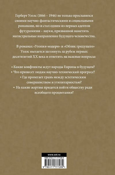 В романах «Утопия-Модерн» и «Облик грядущего» Уэллс пытается заглянуть за рубеж первых десятилетий ХХ века, и ответить на важные вопросы: