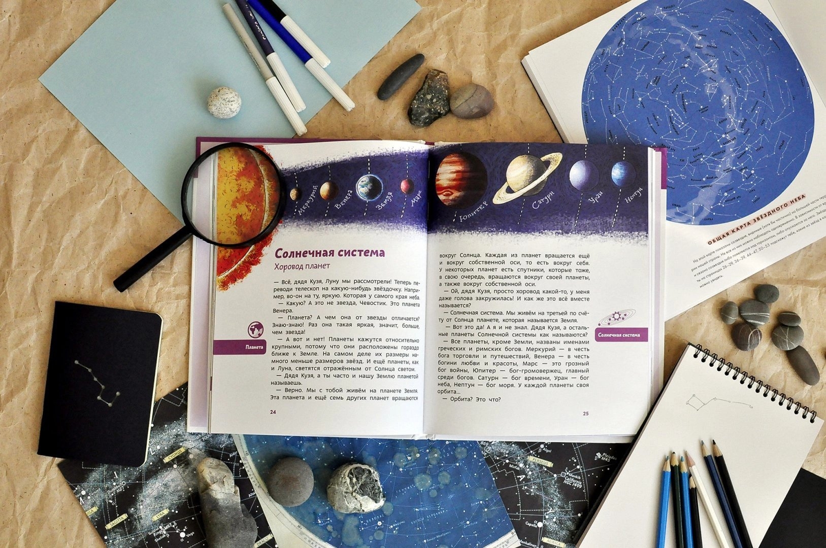 Чевостик и дядя Кузя отправляются в обсерваторию! Здесь их ждёт увлекательное знакомство с небесными светилами, украшающими наше ночное небо. Вместе с любимыми героями вы рассмотрите в телескоп Луну и планеты Солнечной системы, далёкие звёзды и кометы. Почему мы часто видим только золотой серп месяца, если Луна круглая? Чем планеты отличаются от звёзд и откуда у них такие названия? Что такое световой год и почему один земной год равен четырём меркурианским? Какая планета Солнечной системы самая большая, а какая самая красивая? Можно ли увидеть звёзды днём и откуда у кометы хвост? Что такое орбита и спутник, метеоры и затмение? Как всегда, у дяди Кузи готовы ответы на самые любопытные детские вопросы и интереснейший рассказ об астрономии.