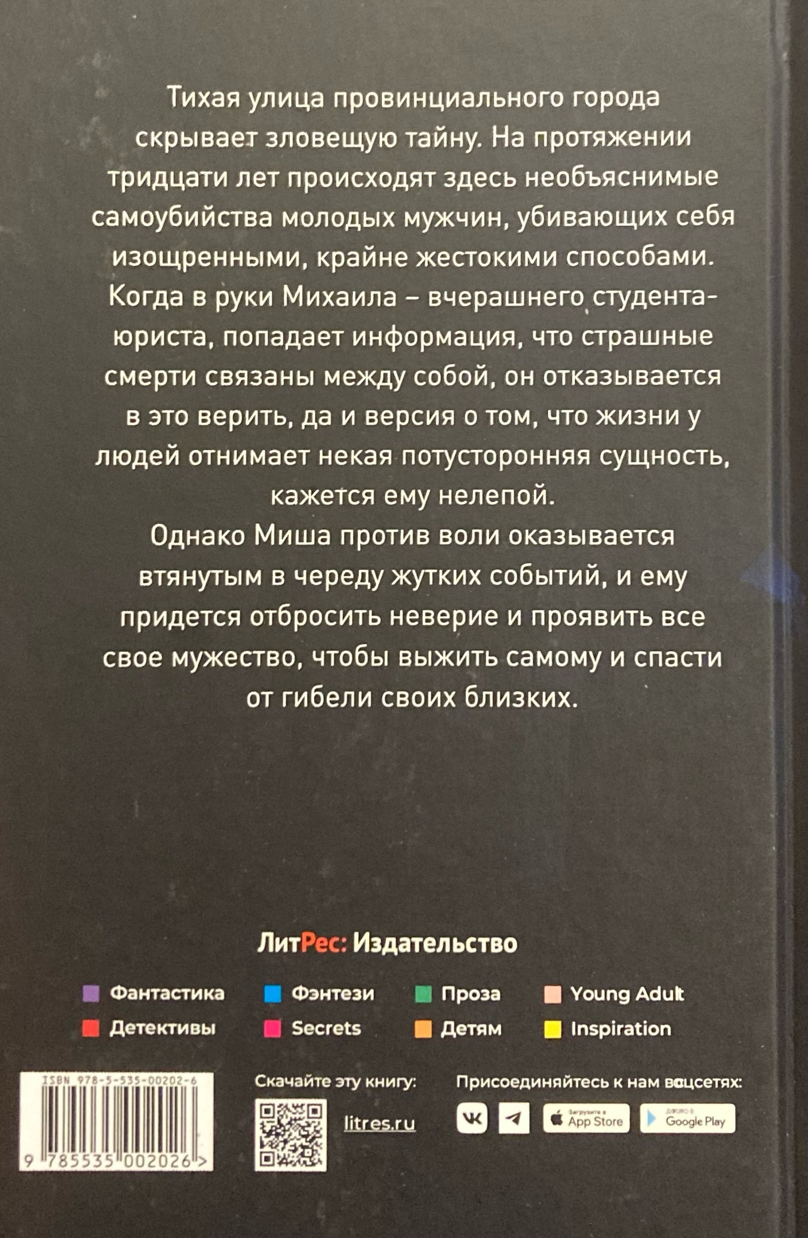 Когда в руки Михаила - вчерашнего студента-юриста, попадает информация, что страшные смерти связаны между собой, он отказывается в это верить, да и версия о том, что жизни у людей отнимает некая потусторонняя сущность, кажется ему нелепой.