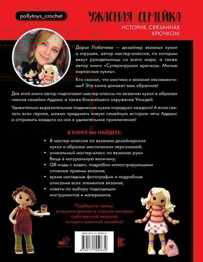 В книге вы найдете мастер-классы по вязанию 8 выразительных подвижных дизайнерских кукол в образах мистических персонажей, а также дополнительный мастер-класс по вязанию руки Вещь в натуральную величину.