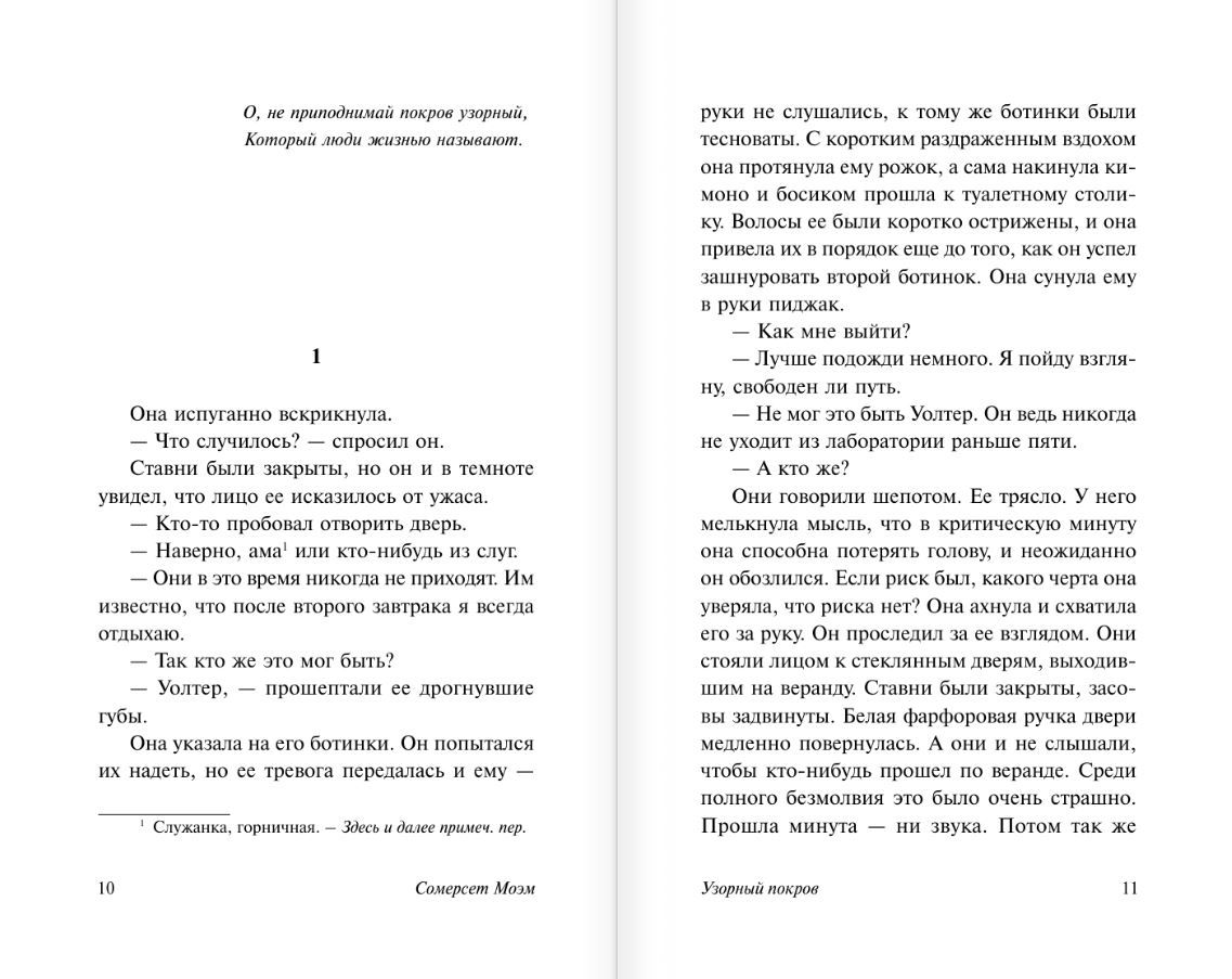 «Узорный покров» (1925) — полная трагизма история любви, разворачивающаяся в небольшом городке в Китае, куда приезжают бороться с эпидемией холеры молодой английский бактериолог с женой.