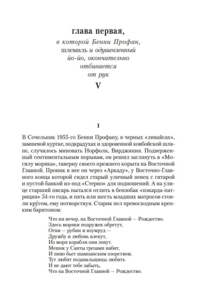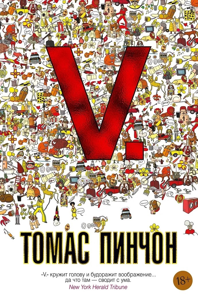 Томас Пинчон — наряду с Сэлинджером «великий американский затворник», один из крупнейших писателей мировой литературы XX, а теперь и XXI века, после первых же публикаций единодушно признанный классиком уровня Набокова, Джойса и Борхеса. В его дебютном романе «V.», удостоенном Фолкнеровской премии и вошедшем в шорт-лист Национальной книжной премии США, читатели впервые познакомились с фирменной пинчоновской одержимостью глобальными заговорами и тайными пружинами истории — и навеки очаровались. Здесь пересекаются пути Бенни Профана, «шлемиля и одушевленного йо-йо», и группы нью-йоркской богемы, известной как Цельная Больная Шайка, и Херберта Шаблона, через множество стран и десятилетий идущего по следу неуловимой V. — то ли женщины, то ли идеи...