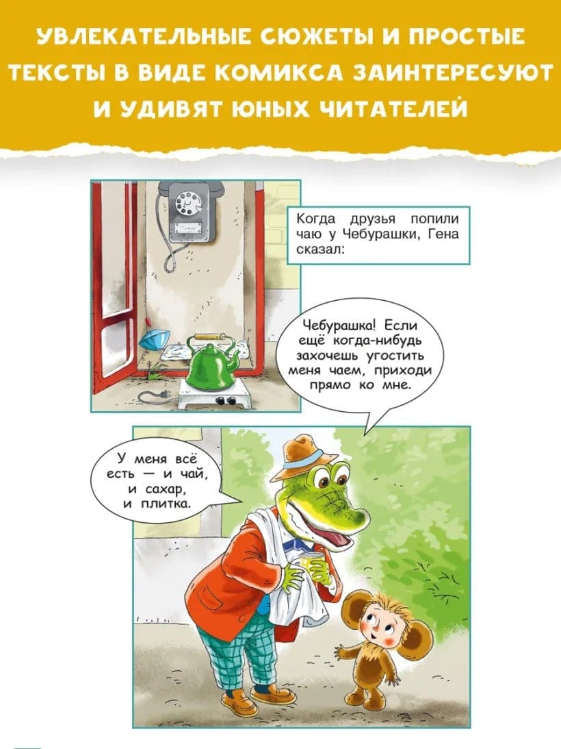 Маленькие сказочки Э. Успенского про Чебурашку и его друга крокодила Гену в этой книге предстанут перед читателем совершенно в новом формате — в виде комиксов. В сборник вошли шесть сказок со знаменитыми героями Эдуарда Успенского: Чебурашкой, крокодилом Геной и старухой Шапокляк.