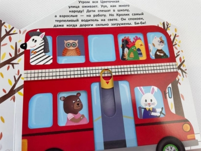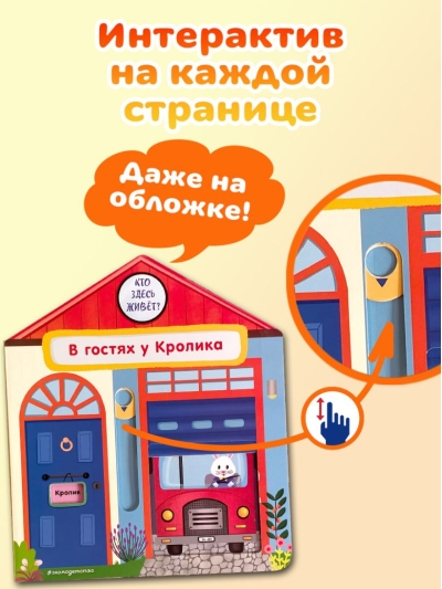 В этой интерактивной книжке-игрушке много сюрпризов: малыш сможет заглянуть в комнаты домика и узнать, чем любит заниматься дружелюбный хозяин. А ещё открыть гараж и покататься на автобусе.