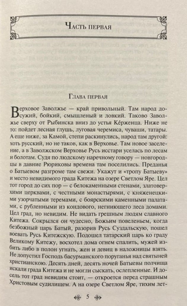 Прекрасный народный язык, погружение в фольклор, подробное описание бытового уклада жизни старообрядцев. В ткань повествования вплетен сказ о Китеже. Показаны и жизнь обители и истории нескольких родов.