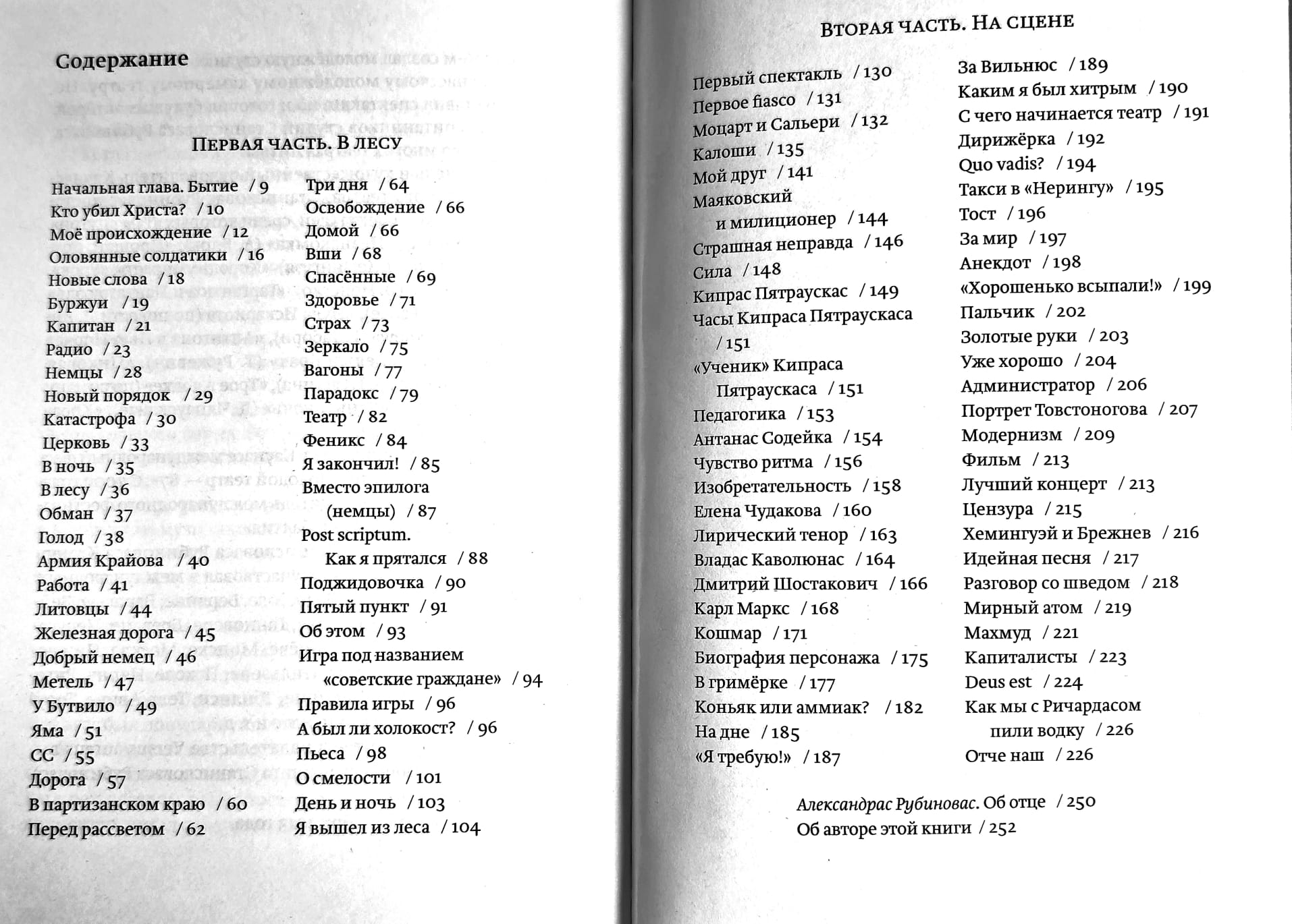«В лесу и на сцене» — автобиографическая книга выдающегося литовского артиста, оперного певца, театрального режиссера, основателя и художественного руководителя Каунасского камерного театра Станисловаса Рубиноваса (1930–2013). Первая её часть — захватывающий рассказ о том, как во время немецкой оккупации молодая еврейка с сыном-подростком три с половиной года прятались в лесах Западной Белоруссии. Вторая часть — глубоко человечное свидетельство о многих выдающихся личностях: певце Кипрасе Пятраускасе, композиторе Дмитрии Шостаковиче, художнике Стасисе Красаускасе, поэте Паулюсе Ширвисе, певице Елене Чудаковой, режиссере Георгии Товстоногове и других.