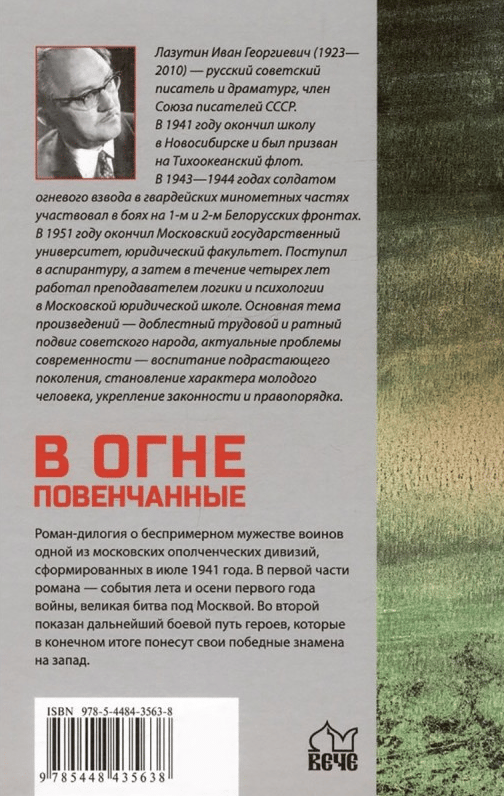 Роман-дилогия «В огне повенчанные» русского писателя Ивана Лазутина, широко известного по книгам «Сержант милиции», «Суд идет», «Черные лебеди», о беспримерном мужестве воинов одной из московских ополченческих дивизий, сформированных в июле 1941 года. В первой части романа — события лета и осени первого года войны, великая битва под Москвой. На карту поставлено все: судьбы, жизни, будущее москвичей, да и всей страны. Во второй показан дальнейший боевой путь героев, которые в конечном итоге понесут свои победные знамена на запад.