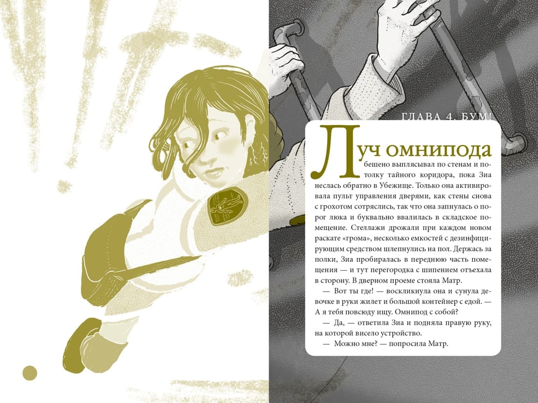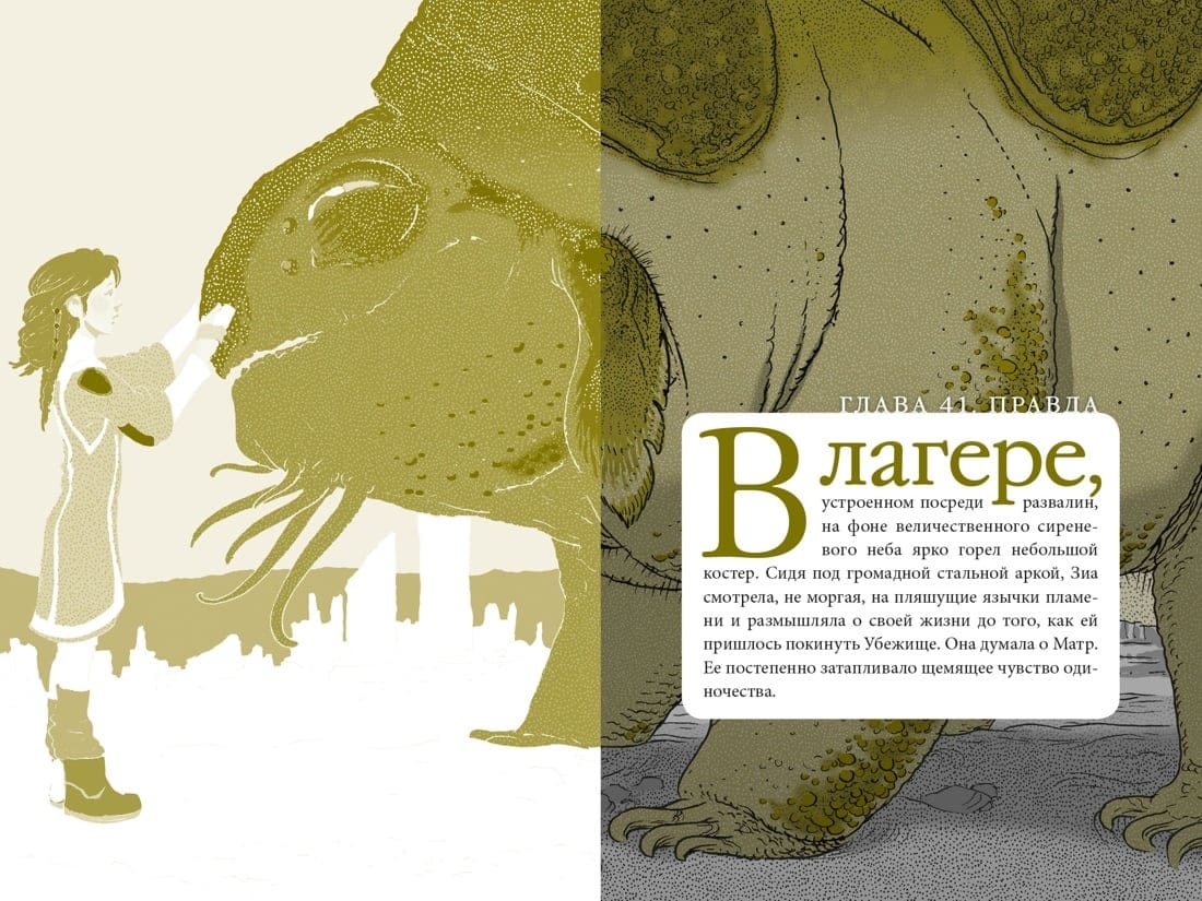 Камиль Зиа Девять – обычная девочка, которая живет в оснащенном по последнему слову техники доме, именуемом Убежище, и воспитывается многофункциональным роботом Матр. А еще Зиа Девять ни разу не выходила на поверхность, не чувствовала, как на кожу падают капли дождя, охлаждая ее в зной, – разве это не то же самое, что стоять под душем? – и не встречала никого, кто был бы похож на нее, – то есть человека. А еще у Зии Девять есть секрет – загадочная УдивЛа. Именно в это слово сложились буквы на странной «плитке», найденной в одном из секретных коридоров Убежища. Зиа и не подозревает, что совсем скоро ей предстоит выяснить, кто же эти счастливая девочка и ее друзья, изображенные на УдивЛе, а для этого ей придется пуститься в невероятно захватывающее путешествие, полное новых впечатлений, встреч и опасностей.