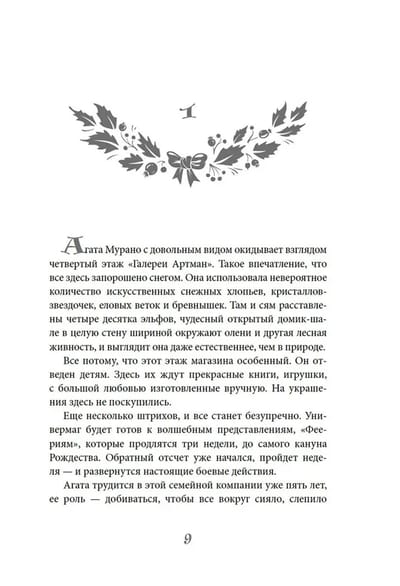 Оформительница Агата Мурано уже пять лет верой и правдой служит в «Галерее Артман» — семейном универмаге, который каждое Рождество становится одной из главных достопримечательностей округи. «Галерея» в эти дни сказочно украшена, и в немалой степени стараниями Агаты.