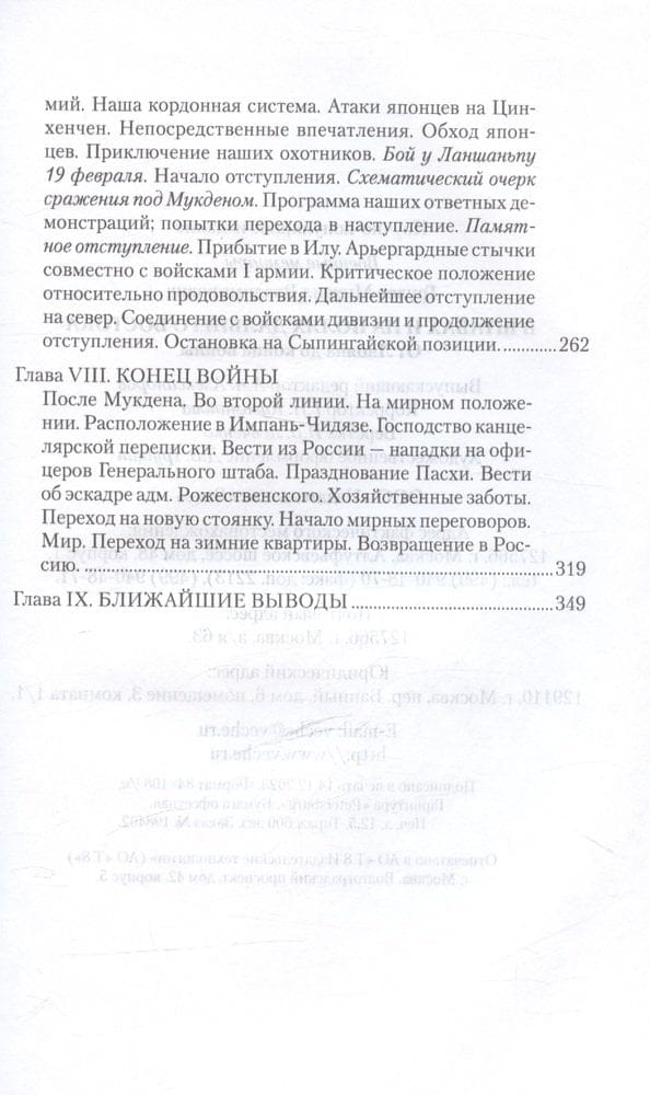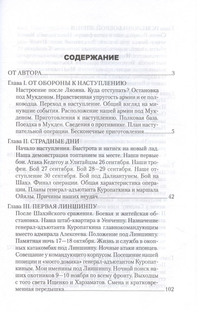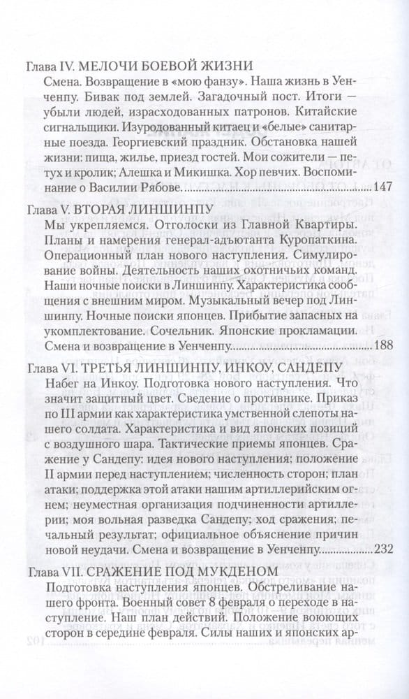 Книга является второй частью воспоминаний командира 11-го пехотного Псковского полка М. В. Грулева о Русско-японской войне 1904—1905 гг. Повествование начинается с описания отступления русской Маньчжурской армии после Ляоянского сражения, содержит подробный рассказ об операции на реке Шахэ, сражениях у Сандепу и под Мукденом, Сыпингайском «сидении», заключении перемирия и мира. Завершают воспоминания выводы автора о причинах поражения русской армии в войне с Японией.