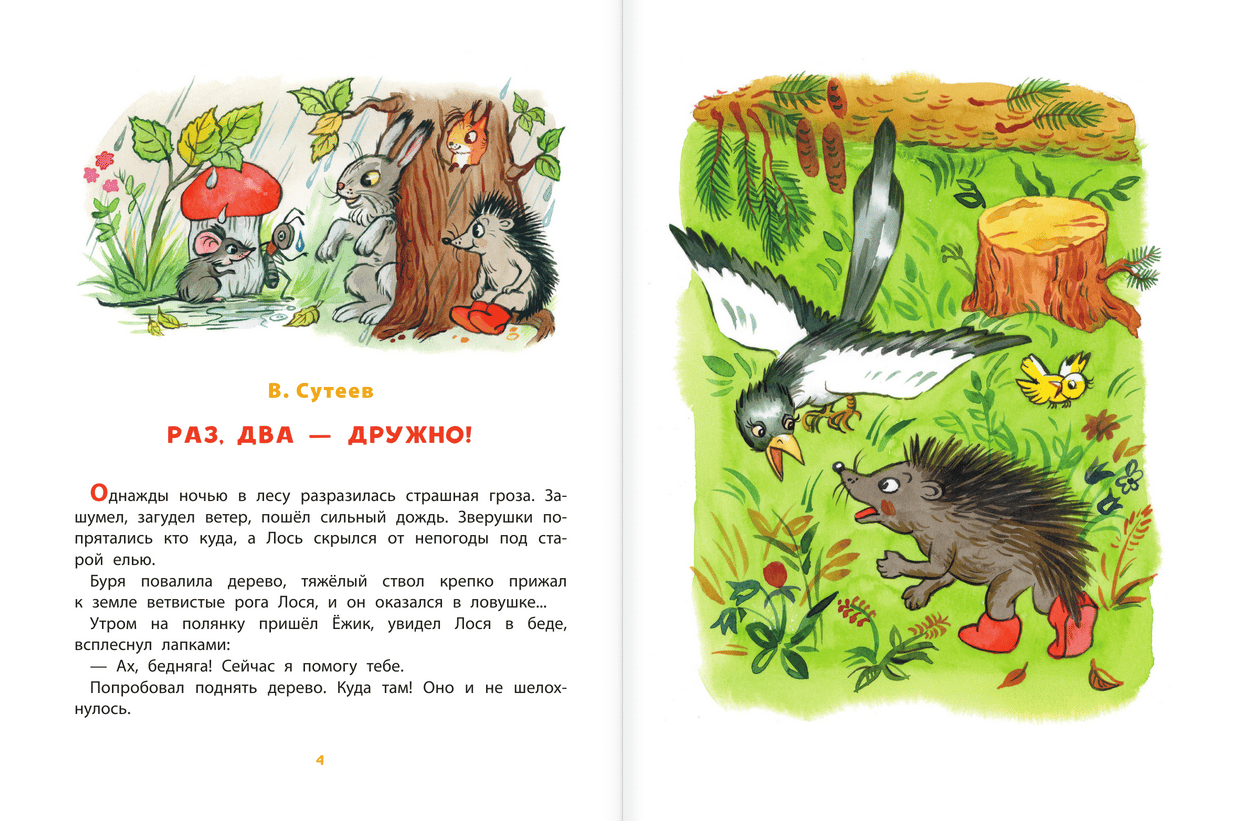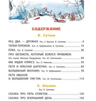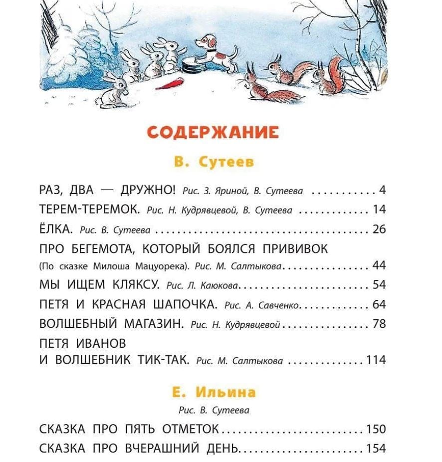 В. Сутеев был ещё и сценаристом известных мультфильмов. «Снеговик-почтовик», «Терем-теремок», «Только не сейчас» − эти и другие истории можно увидеть на экране и прочитать в книжке. В сборник вошли самые интересные сказки-мультфильмы по сценариям В. Сутеева и две сказки Е. Ильиной с рисунками художника. Иллюстрации В. Сутеева к «Сказке про пять отметок» и «Сказке про вчерашний день» Е. Ильиной публикуются впервые.