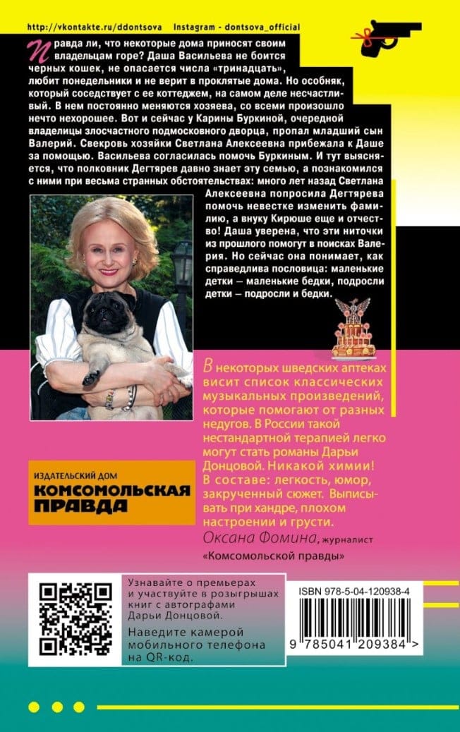 Правда ли, что некоторые дома приносят своим владельцам горе? Даша Васильева не боится черных кошек, не опасается цифры тринадцать, любит понедельники и не верит в проклятые дома. Но особняк, который соседствует с ее коттеджем, на самом деле несчастливый. В нем постоянно меняются хозяева и со всеми произошло нечто нехорошее. Вот и сейчас у Карины Буркиной, очередной владелицы злосчастного подмосковного дворца, пропал младший сын Валерий. Свекровь хозяйки Светлана Алексеевна прибежала к Даше за помощью. Васильева согласилась помочь Буркиным. И тут выясняется, что полковник Дегтярев давно знает эту семью, и познакомился с ними при весьма странных обстоятельствах: много лет назад Светлана Алексеевна, попросила Дегтярева помочь изменить фамилию невестки, а внуку Кирюше еще и отчество! Даша уверена, что эти ниточки из прошлого помогут в поисках Валерия. Но сейчас она понимает как справедлива пословица: маленькие детки - маленькие бедки, подросли детки - подросли и бедки.