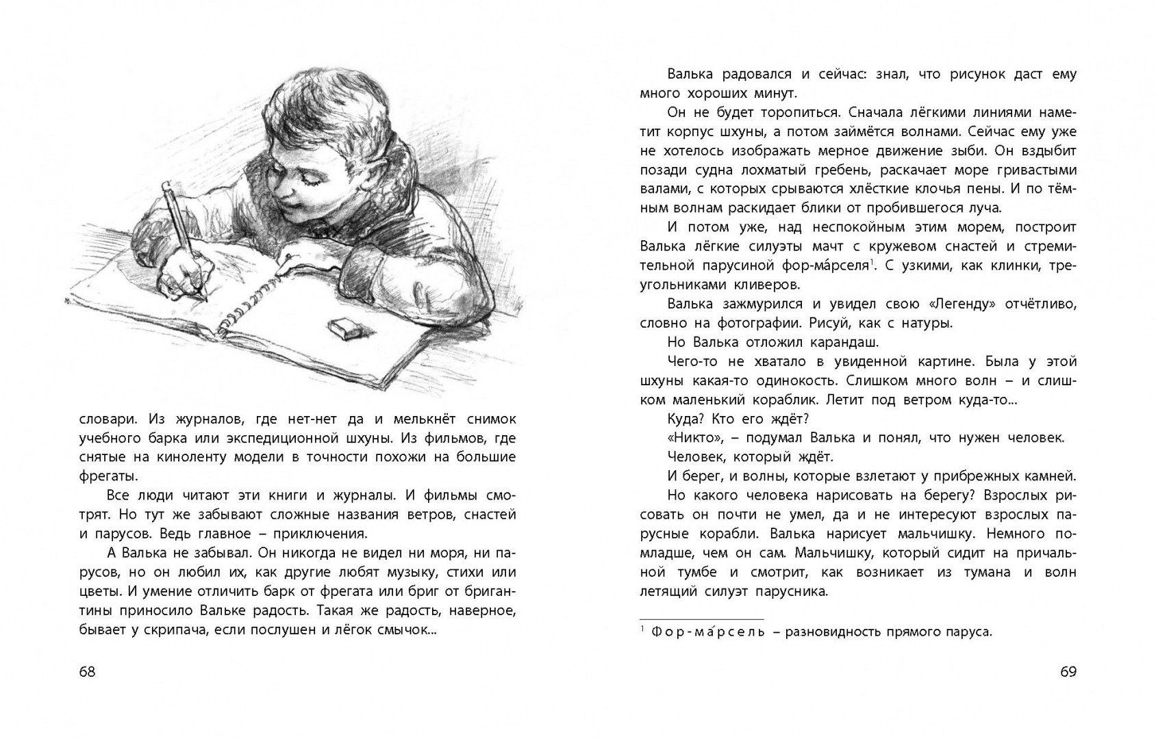 Герой повести – мечтательный и замкнутый Валька Бегунов. Соседская малышня в нем души не чает, считая смелым, мужественным и талантливым. А в школе Валька в силу характера никого к себе близко не подпускает, и из-за этого постоянно попадает в неприятности. Мальчик замечательно рисует, но застенчиво прячет свой альбом. А там, на каждой странице – самое заветное: чудесные корабли, о которых грезит Валька.