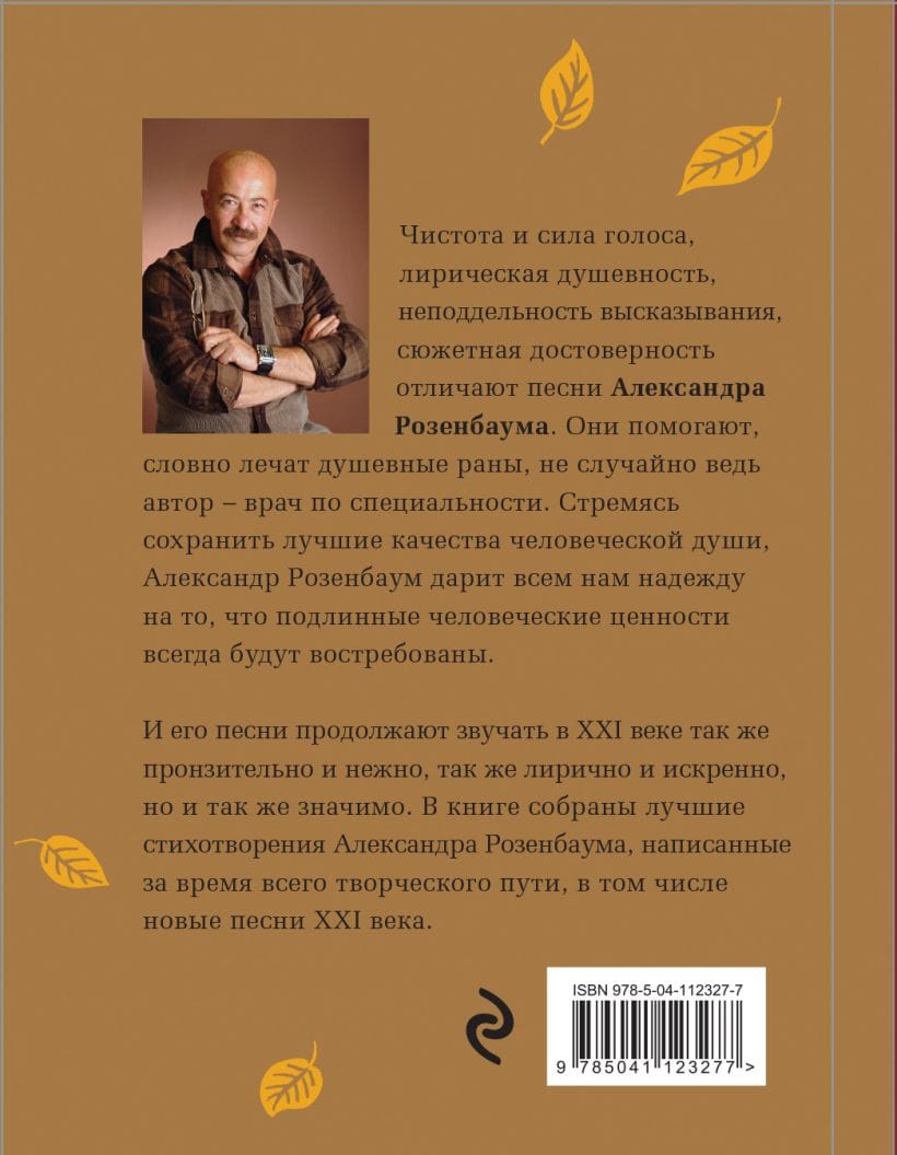 Основу книги составляют широко известные песни Александра Розенбаума, написаннные в 70 - 90-е годы ХХ века, прошедшие испытание временем и любимые не одним поколением слушателей. И его песни продолжают звучать в ХХI веке так же пронзительно и нежно, так же лирично и искренно, но и так же значимо, достоверно и убедительно. В книге собраны лучшие стихотворения Александра Розенбаума, написанные за время всего творческого пути, в том числе новые песни ХХI века. Песни, входящие в этот сборник, Александр Розенбаум исполняет на концертах в разных городах России.
