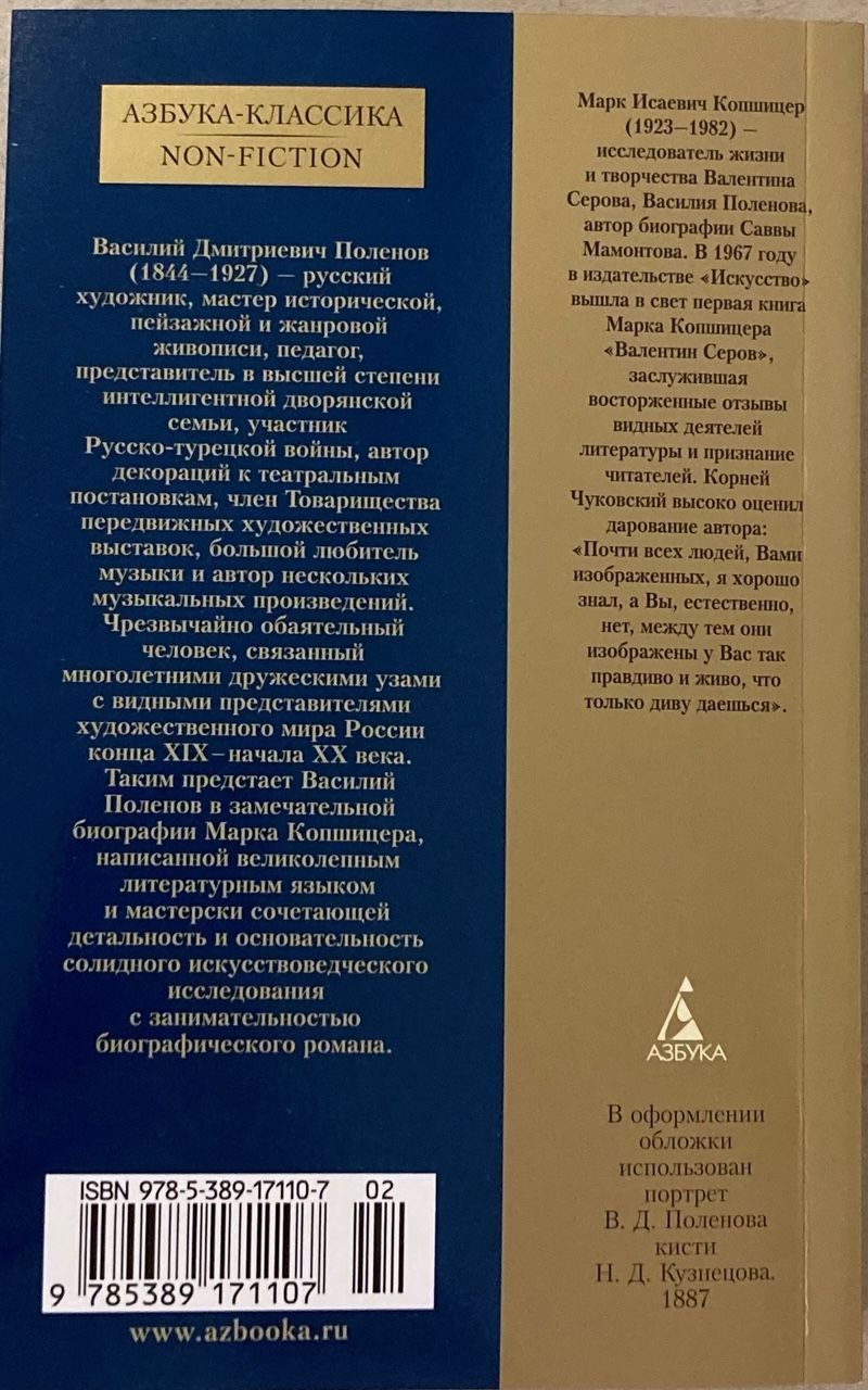 Таким предстает Василий Поленов в замечательной биографии Марка Копшицера, написанной великолепным литературным языком и мастерски сочетающей детальность и основательность солидного искусствоведческого исследования с занимательностью биографического романа.