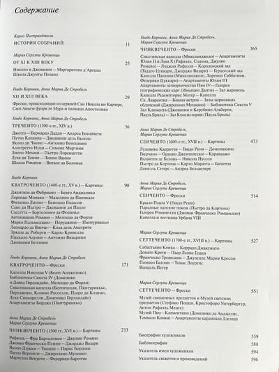 Ватикан — один из самых блистательных музейных комплексов мира. Его коллекции завораживающих фресок и картины, алтарных образов и скульптур собирали римские первосвященники, каждый из которых был яркой неповторимой личностью. Величественные дворцы и залы Ватикана проектировали и украшали великие мастера: Браманте и Микеланджело, Рафаэль и Боттичелли, Перуджино и Гирландайо, Пинтуриккьо и Вазари, роскошный Бернини и многие другие архитекторы, скульпторы и живописцы, стремившиеся сделать папскую обитель богатой и торжественной. Прекрасные росписи и сегодня покрывают стены и своды Сикстинской капеллы, Станц и Лоджий Рафаэля, апартаментов Борджа, капеллы Николлина.