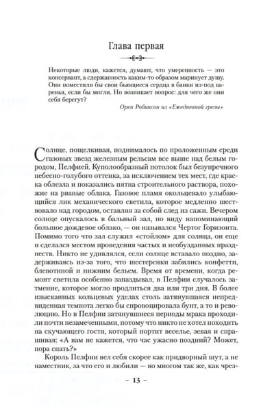 В поисках пропавшей жены Томас Сенлин успел побыть актером, авантюристом, капитаном порта и пиратом, а теперь он шпион самого Сфинкса. Сенлин отправляется в удел Пелфия с заданием выяснить, кто же в этой обители гуляк и модников ведет деятельность, тщательно сокрытую от механических глаз и ушей хозяина Вавилонской башни. Но ход расследования нарушается из-за случайного убийства и неожиданного воссоединения. Жизнь и свобода Сенлина снова в опасности, его старые и новые друзья — в самой гуще стремительных и грозных событий, а над уделом, башней и всем миром сгущаются тучи.