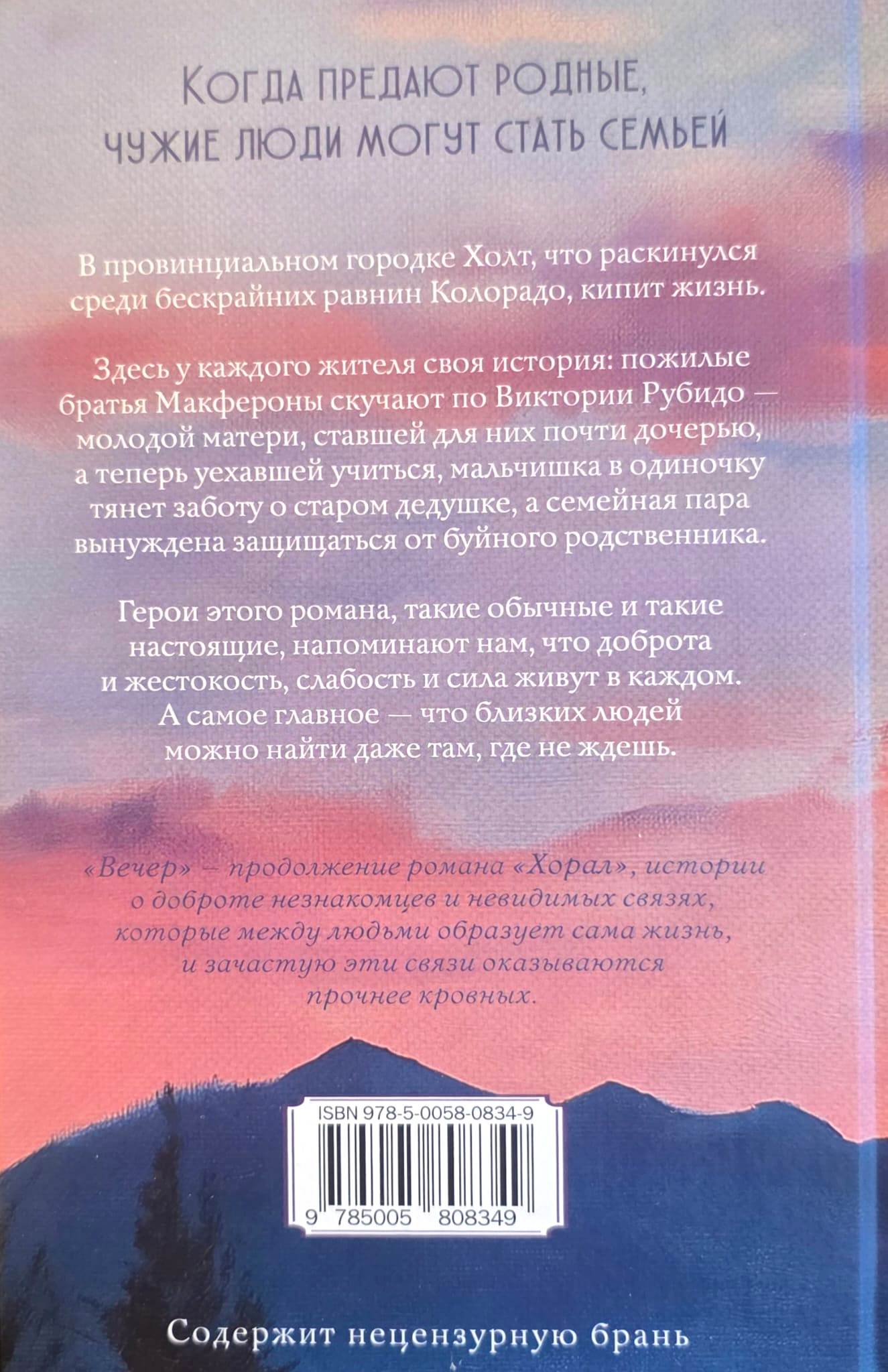 В провинциальном городке Холт, что раскинулся среди бескрайних равнин Колорадо, кипит жизнь. Здесь у каждого жителя своя история: пожилые братья Макфероны скучают по Виктории Рубидо — молодой матери, ставшей для них почти дочерью, а теперь уехавшей учиться, мальчишка в одиночку тянет заботу о старом дедушке, а семейная пара вынуждена защищаться от буйного родственника.