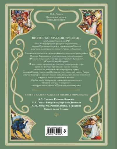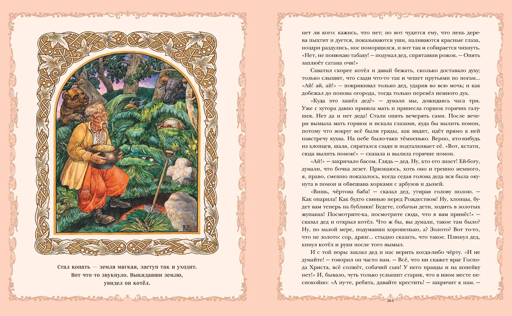 Сборник Н. В. Гоголя «Вечера на хуторе близ Диканьки», едва выйдя из печати, получил восторженные отзывы читателей и критиков. Прекрасные панночки и удалые хлопцы, лукавые ведьмы и зловещие колдуны увлекают нас в шумный, яркий хоровод невероятных событий — лирических, смешных, а порой и страшных. Поэтичные, чарующие описания природы переносят нас в завораживающие просторы широких степей, под ласковое солнце и яркие звёзды высокого южного неба.