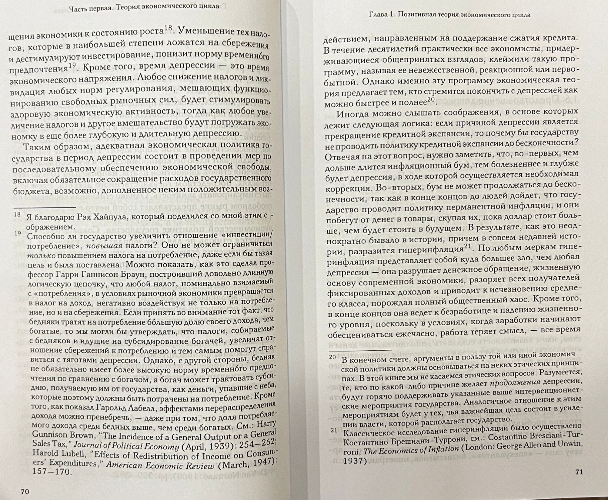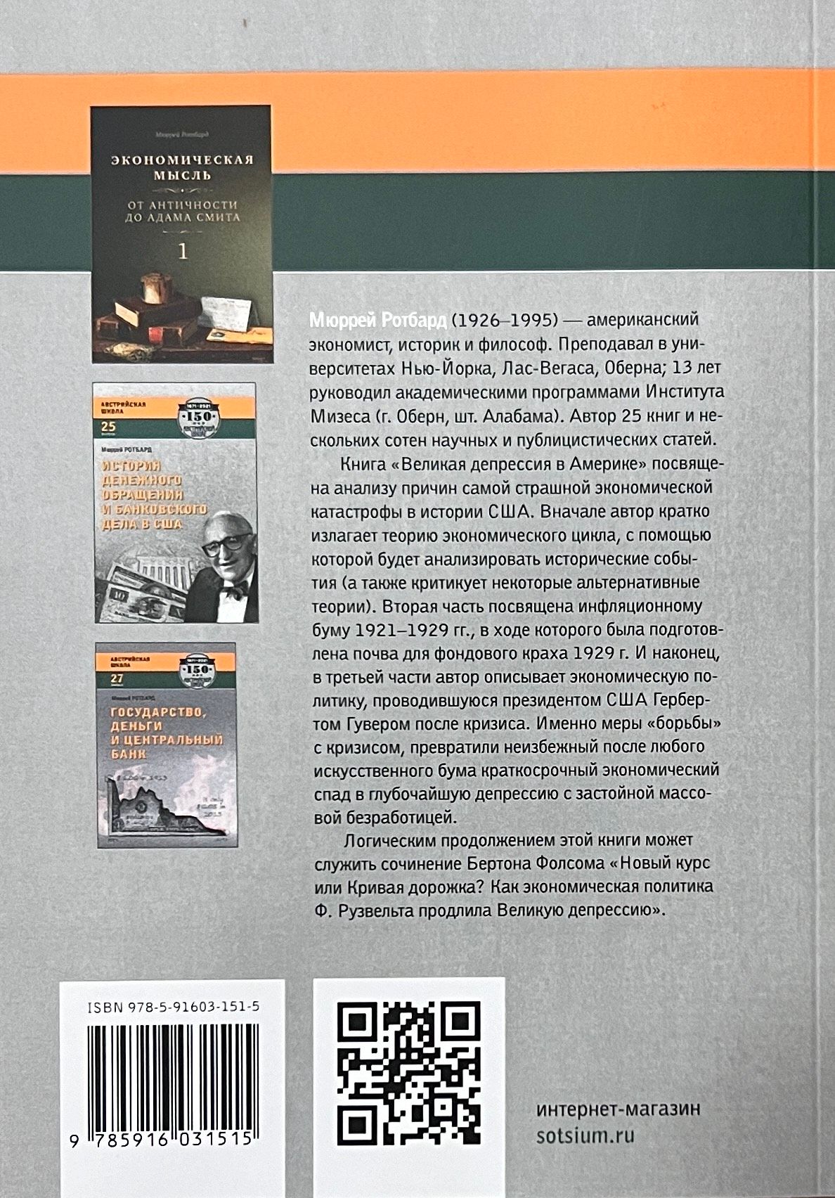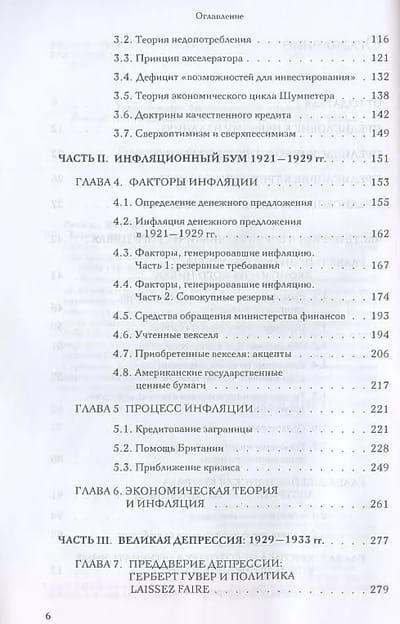 Книга посвящена анализу причин самой страшной экономической катастрофы в истории США. Вначале автор кратко излагает теорию экономического цикла, с помощью которой будет анализировать исторические события (а также критикует некоторые альтернативные теории). Вторая часть посвящена инфляционному буму 1921—1929 гг., в ходе которого была подготовлена почва для фондового краха 1929 г. И наконец, в третьей части автор описывает экономическую политику, проводившуюся президентом США Гербертом Гувером после кризиса. Именно меры «борьбы» с кризисом, превратили неизбежный после любого искусственного бума краткосрочный экономический спад в глубочайшую депрессию с застойной массовой безработицей.