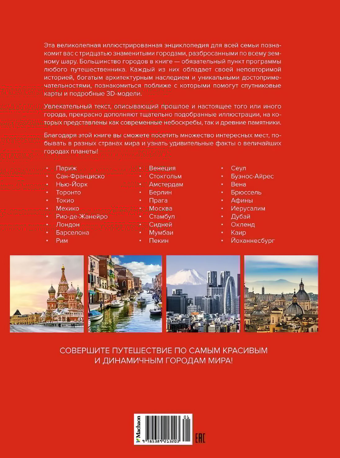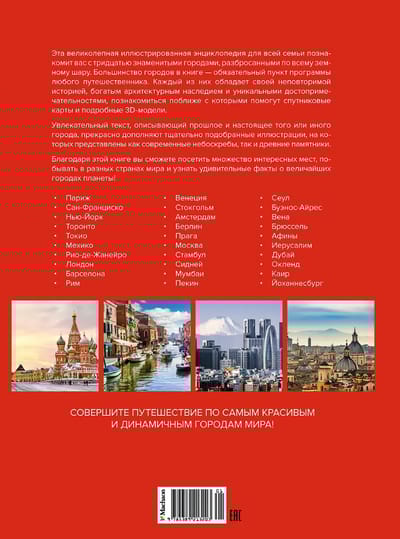 Перед вами великолепная иллюстрированная энциклопедия для всей семьи, которая познакомит вас с тридцатью знаменитыми городами, разбросанными по всему земному шару. Большинство городов в этой книге — обязательный пункт программы любого путешественника. Каждый из них обладает своей неповторимой историей, богатым архитектурным наследием и уникальными достопримечательностями, познакомиться поближе с которыми помогут спутниковые карты и подробные 3D-модели. Увлекательный текст, описывающий прошлое и настоящее того или иного города, прекрасно дополняют тщательно подобранные иллюстрации, на которых представлены как современные небоскребы, так и древние памятники. Благодаря этой книге вы сможете посетить множество интересных мест, побывать в разных странах мира и узнать удивительные факты о величайших городах планеты!