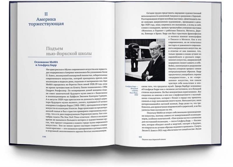 После Второй мировой войны в культуре произошел огромный сдвиг: центр художественной жизни переместился из Европы в Америку. Сам автор говорит так: «Франция — мать и отец этой книги, а Америка — ее возмужалое дитя». И начинает рассказ с истории парижского коллекционирования послевоенного времени, крайне тяжелого для Европы, попутно объясняя переход к доминированию Америки на арт-сцене.
