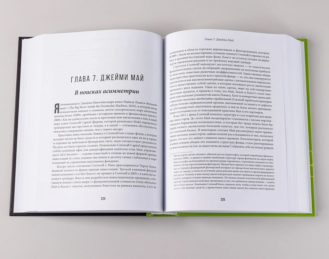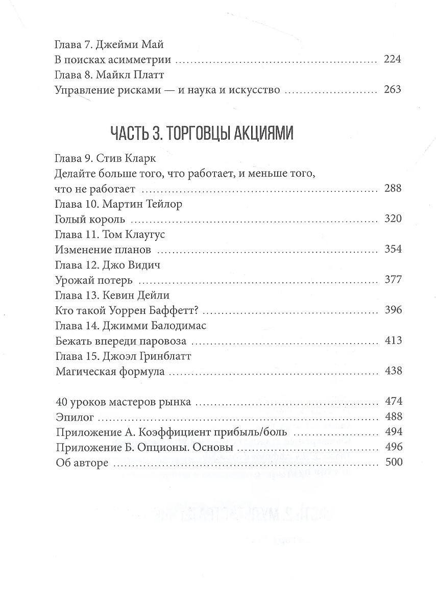 Однако для того чтобы найти свой неповторимый стиль, полезно будет ознакомиться с опытом величайших трейдеров современности — не для того, чтобы пытаться повторить их методы, но для того, чтобы окунуться с головой в поэзию американского фондового рынка, почувствовать переплетение личной судьбы и характера с сухими цифрами биржевых котировок. В книге представлены глубинные интервью с 15 известнейшими биржевиками в США, «магами хедж-фондов», включая Джоэла Гринблатта, Эда Торпа, Майкла Платта, Рэя Далио, Колма О’Ши. Это люди с разными судьбами, выходцы из разных слоев общества, объединенные лишь целеустремленностью и желанием избежать психологических препятствий, которые мешают выигрывать большинству. Что же это за препятствия и как стать трейдером, который не проигрывает, — читайте в книге Джека Швагера.