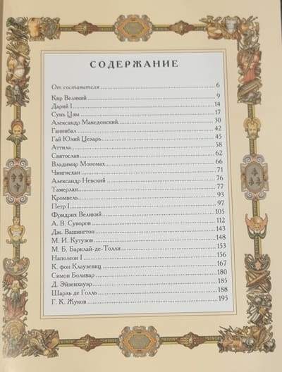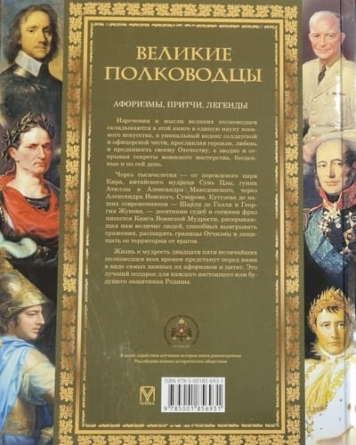 Через тысячелетия — от персидского царя Кира, китайского мудреца Сунь Цзы, гунна Атиллы и Александра Македонского, через Александра Невского, Суворова, Кутузова до наших современников Шарля де Голля и Георгия Жукова, — десятками судеб и сотнями фраз пишется Книга Воинской Мудрости, раскрывающая нам величие людей, способных выигрывать сражения, расширять границы Отчизны и защищать ее территории от врагов.