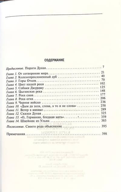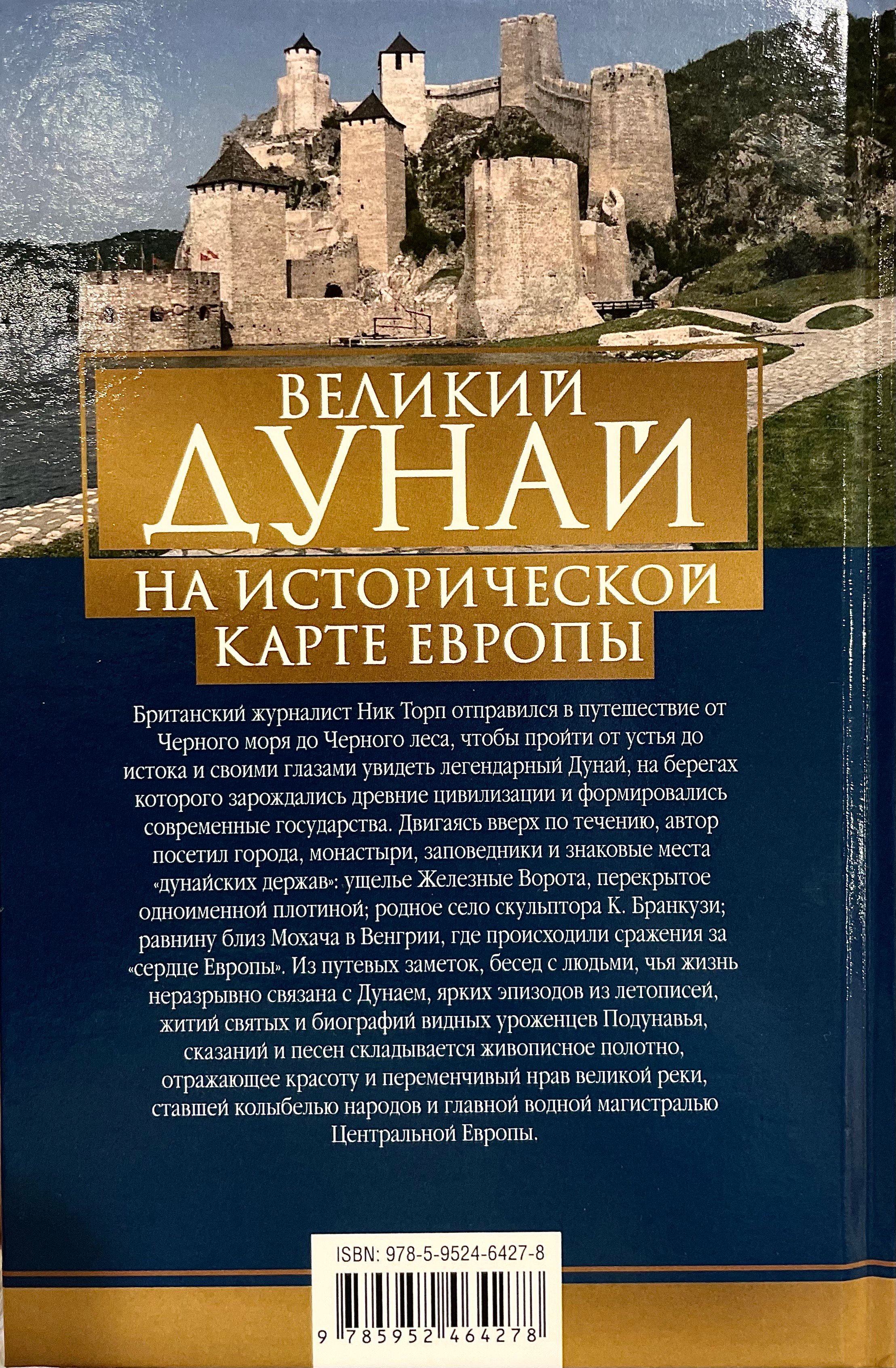 Британский журналист Ник Торп отправился в путешествие от Черного моря до Черного леса, чтобы пройти от устья до истока и своими глазами увидеть легендарный Дунай, на берегах которого зарождались древние цивилизации и формировались современные государства. Двигаясь вверх по течению, автор посетил города, монастыри, заповедники и знаковые места «дунайских держав»: ущелье Железные Ворота, перекрытое одноименной плотиной; родное село скульптора К. Бранкузи; равнину близ Мохача в Венгрии, где происходили сражения за «сердце Европы». Из путевых заметок, бесед с людьми, чья жизнь неразрывно связана с Дунаем, ярких эпизодов из летописей, житий святых и биографий видных уроженцев Подунавья, сказаний и песен складывается живописное полотно, отражающее красоту и переменчивый нрав великой реки, ставшей колыбелью народов и главной водной магистралью Центральной Европы.