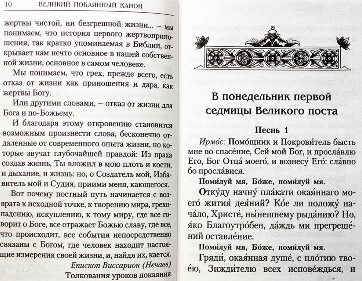 Данное издание удобно брать с собой в храм на чтение Великого покаянного канона, чтобы следить за чинопоследованием и внимать словам покаяния. Канон преподобного Андрея Критского читается два раза за пост. Первый раз он читается частями в самом начале поста — вечером первой недели с понедельника по четверг. Второй раз канон, дополненный каноном и житием преподобной Марии Египетской, вычитывается целиком на богослужении, называемом Марииным стоянием. Оно происходит вечером в среду пятой недели Великого поста. Вечером Великого четверга на страстной неделе совершается богослужение с чтением 12-ти страстных Евангелий, т. е. отрывками из Евангелий, посвященных земным страданиям Спасителя. Последование пассии совершается 4 раза (по числу евангелистов) за пост — во 2-е, 3-е, 4-е и 5-е воскресенья. На этом богослужении также читаются главы Евангелий, посвященные страданиям Господа.