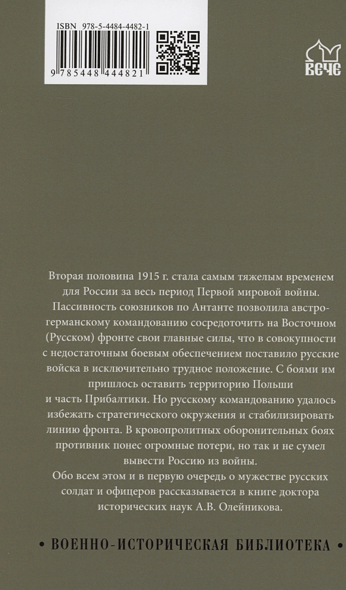 Вторая половина 1915 г. стала самым тяжелым временем для России за весь период Первой мировой войны. Пассивность союзников по Антанте позволила австро-германскому командованию сосредоточить на Восточном (Русском) фронте свои главные силы, что в совокупности с недостаточным боевым обеспечением поставило русские войска в исключительно трудное положение. С боями им пришлось оставить территорию Польши и часть Прибалтики. Но русскому командованию удалось избежать стратегического окружения и стабилизировать линию фронта. В кровопролитных оборонительных боях противник понес огромные потери, но так и не сумел вывести Россию из войны.