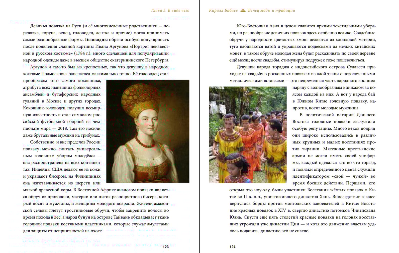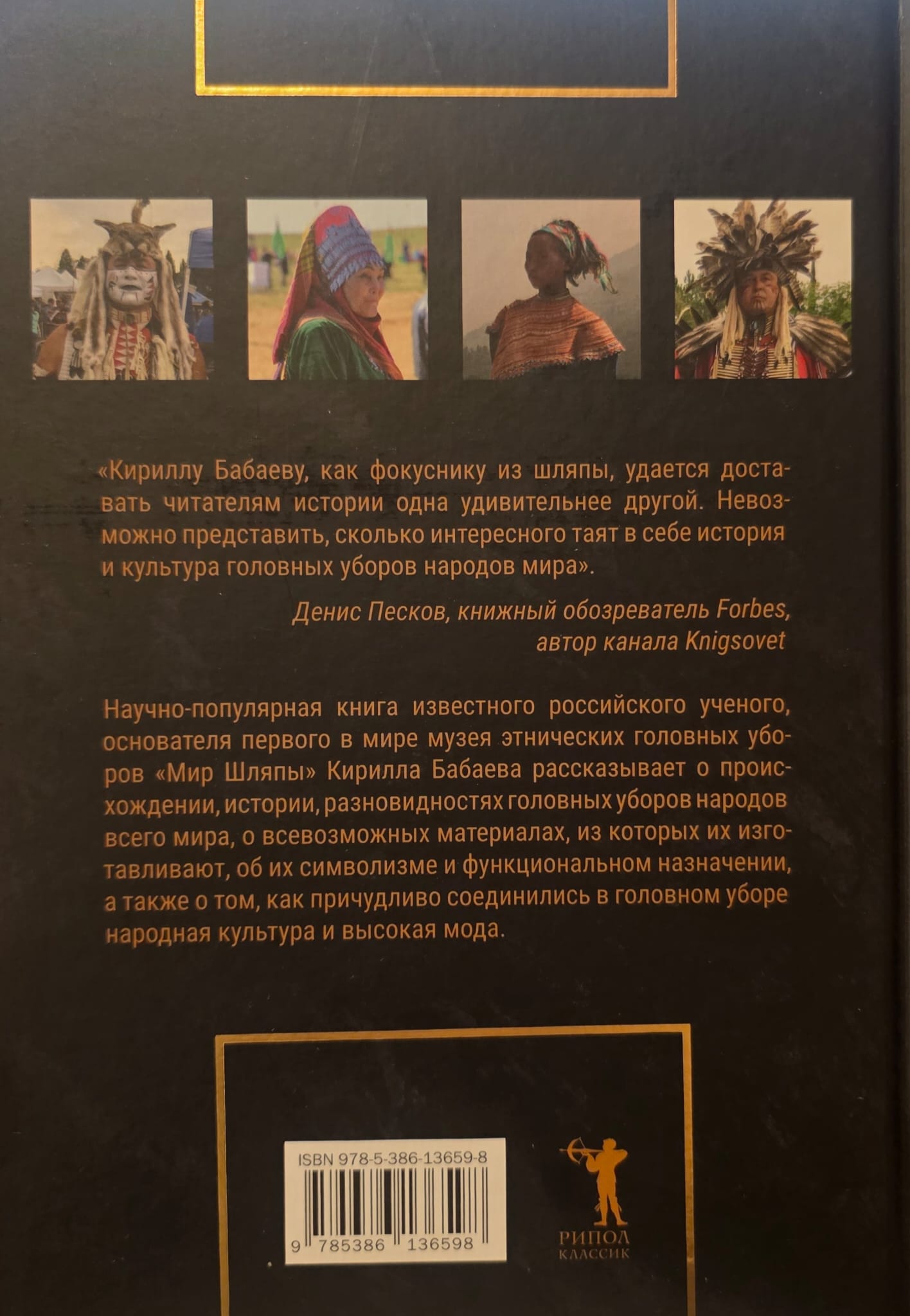 Книга представляет собой первое в русскоязычной литературе научно-популярное издание, посвященное такому важному и выразительному элементу традиционного костюма, как головной убор. Его происхождение, разновидности, культурное значение раскрываются через десятки увлекательных историй, рассказанных Кириллом Бабаевым — ученым и путешественником, основавшим в 2014 г. первый в мире музей традиционных головных уборов «Мир Шляпы».