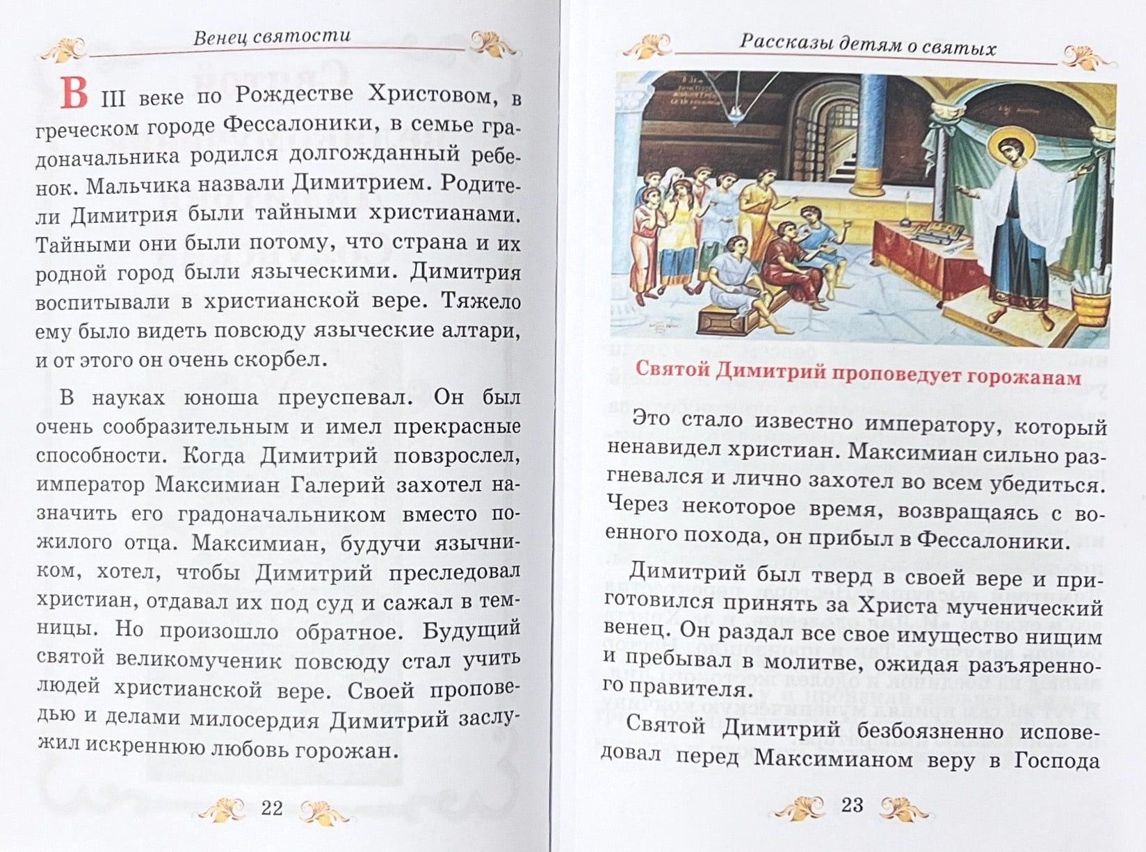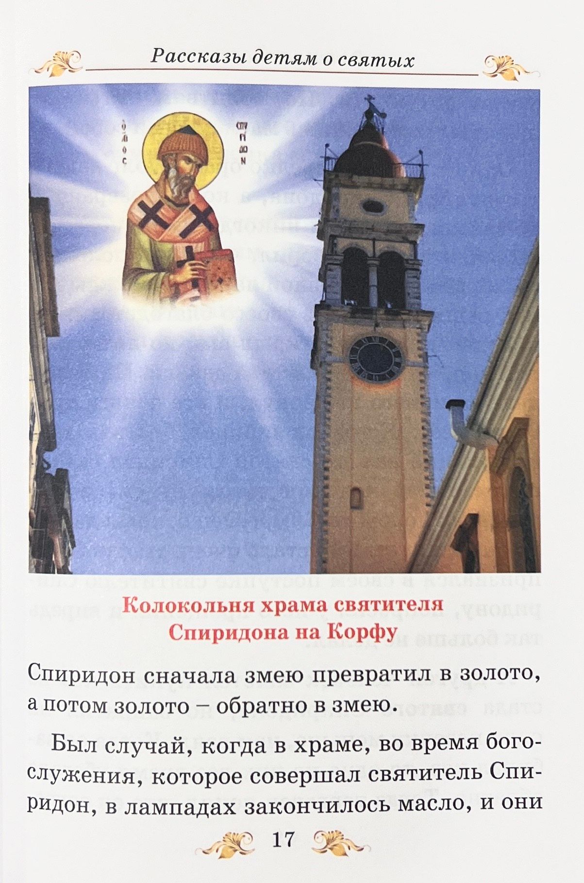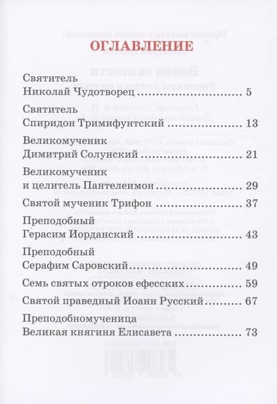 В книге рассказывается о святителе Николае Чудотворце, святителе Спиридоне Тримифунтском, великомученике Димитрии Солунском, великомученике Пантелеимоне, святом мученике Трифоне, преподобном Герасиме Иорданском, преподобном Серафиме Саровском и др.