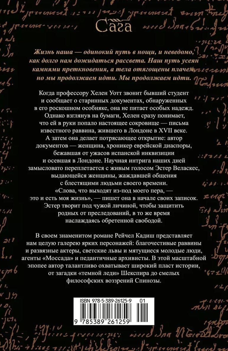 Действие романа разворачивается в Лондоне 1660-х годов и в начале двадцать первого века; в нем переплетаются истории двух женщин: Эстер Веласкес, беженки из Амстердама, ставшей писцом у слепого раввина незадолго до нашествия на Лондон чумы, и профессора Хелен Уотт, которая, несмотря на возраст и слабое здоровье, все еще горит страстью к истории. Когда бывший студент приглашает Хелен осмотреть тайник со случайно обнаруженными документами семнадцатого века, она привлекает в качестве помощника Аарона Леви, нетерпеливого, но обаятельного аспиранта из Америки, и приступает к последнему в своей научной карьере проекту: установить личность загадочного писца, подписывающегося лишь одной буквой «алеф». Несмотря на то что героинь разделяют столетия, обе должны сделать нелегкий выбор и пойти на жертвы, чтобы примирить жизнь сердца и разума.