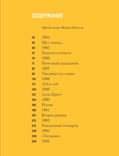 Эта книга воскрешает в памяти историю Айртона — спортивную и человеческую — серией глав, каждая из которых посвящена отдельной теме: от его езды на городских трассах (прежде всего, в Монте-Карло) до любви к дождевым гонкам, в которых он творил чудеса, от его отношений с партнерами до вошедшей в историю вражды с Аленом Простом. Книга проведет вас через все этапы невероятной карьеры Сенны, начавшейся в «Тоулмене» и трагически закончившейся в «Уильямсе». Важную часть книги составляет серия глав, рассказывающих об одиннадцати сезонах Айртона в «Формуле-1» — гонка за гонкой.