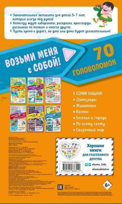 Блокнот «Веселье в городе» — это более 70 увлекательных заданий на логику, внимание и воображение для детей 5—7 лет. Найди отличия, пройди лабиринты, реши интересные загадки и раскрась картинки!