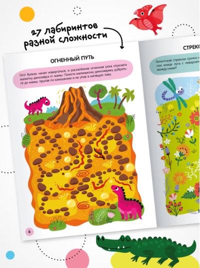 Книга «Динозавры» серии «Весёлые лабиринты» — отличный выбор для юных любителей ходилок и бродилок. В книге вы найдете 27 лабиринтов разных типов и уровней сложности с ответами. Ребенок узнает, где живут динозавры, попрыгает по отпечаткам лап по кочкам, поможет малышам-динозаврикам без приключений добраться до родителей и многое другое. А еще лабиринты помогают развитию мелкой моторики, внимательности и мышления.